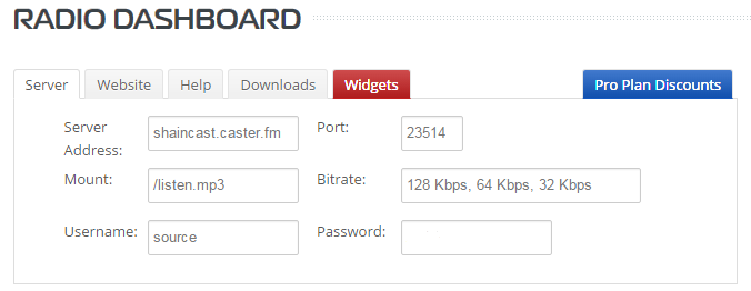 Le code est donnée par caster.fm.